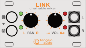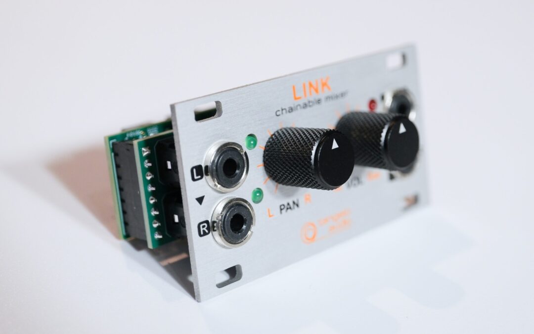 The LINK module is a stereo mixer element. Several LINKS are chained together to make a multi-channel mixer. LINK requires a compatible Eurorack case to operate.